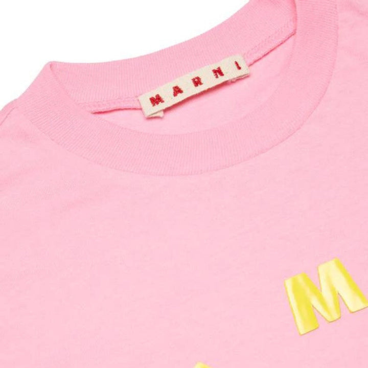 Short-sleeved crew-neck T-shirt in jersey. Featuring the thick Marni Round logo in contrasting color on the front. Made of 100% cotton.