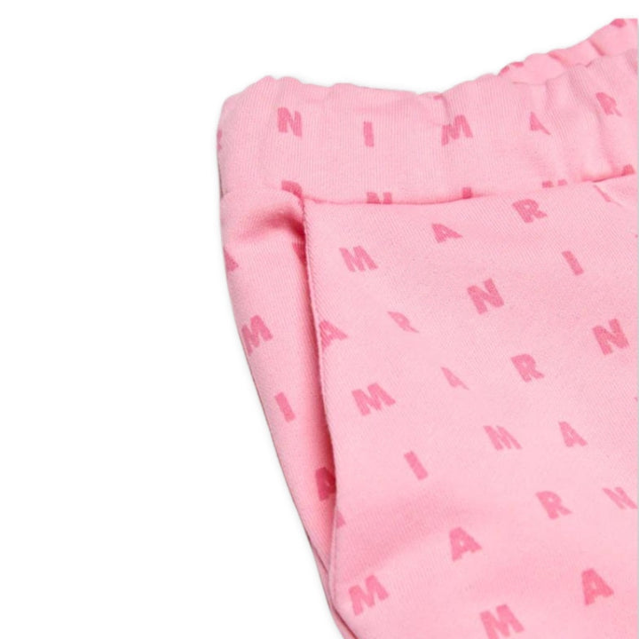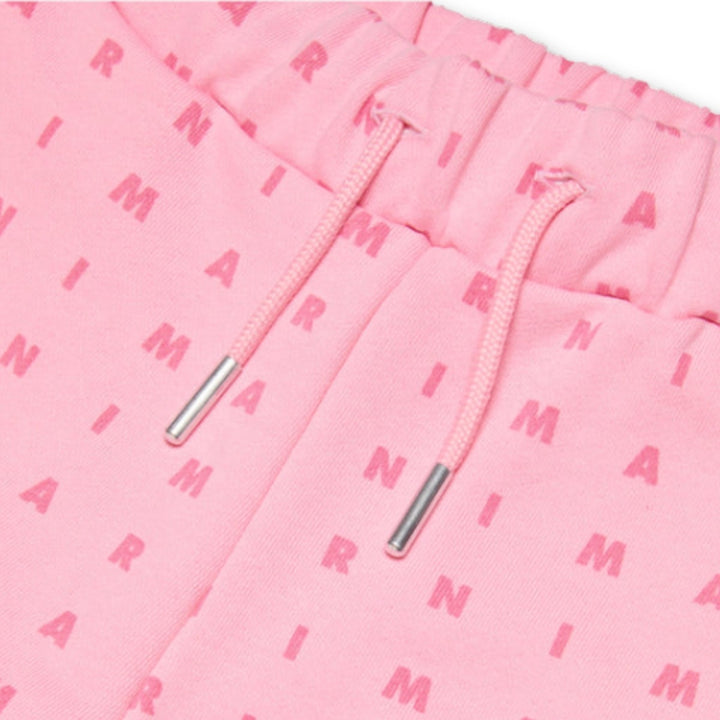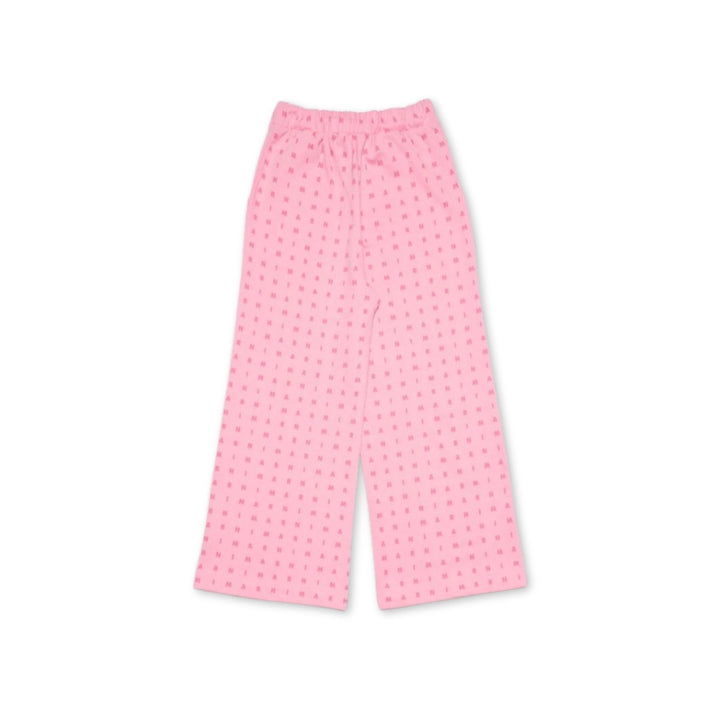 Wide leg sweatshirt pants with allover logo graphic. Drawstring waist. American-style front pockets.