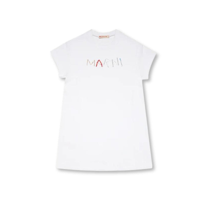 Girls White Fleece Dress With Baguette Logo