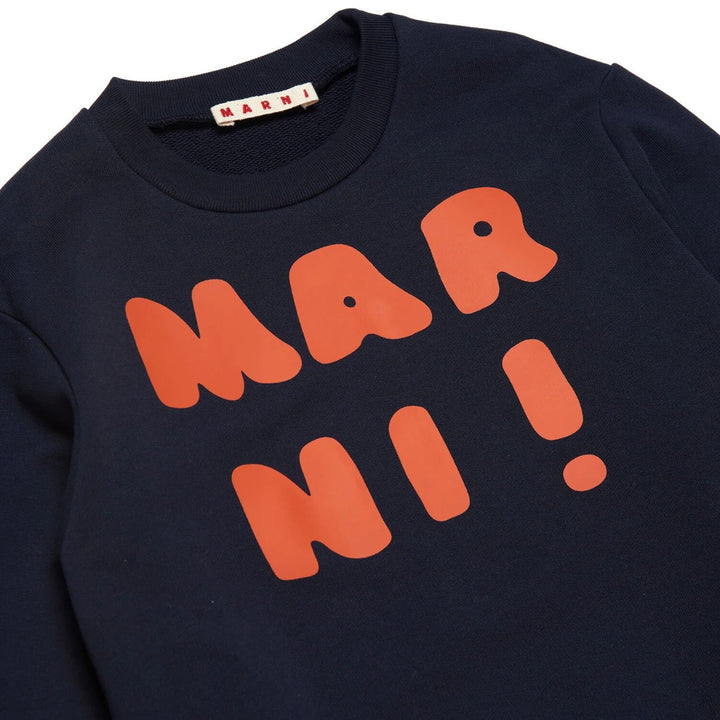 Long-sleeved crew-neck cotton sweatshirt with ribbed collar, hem and cuffs. Features a MARNI! logo on the front in contrasting color.\