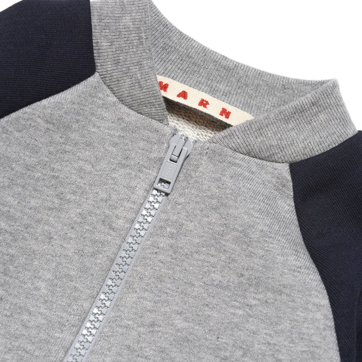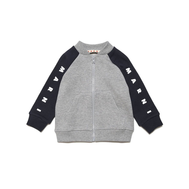 Long-sleeved cotton sweatshirt with zip, elastic bottom and cuffs. Features front pockets and colorblock side bands with contrasting Marni Institutional logo on sleeves.\