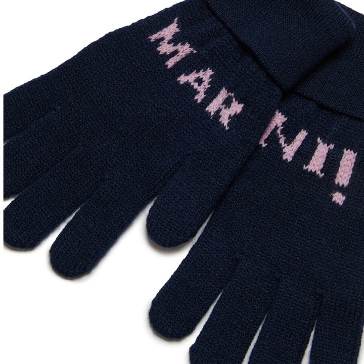 Wool-blend gloves with MARNI! logo in contrasting color split between the two units. They feature ribbed work on the cuffs.\