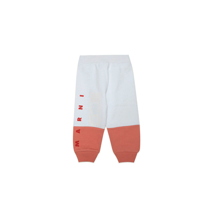 Cotton trousers with elastic waistband and non-elastic ankle cuff. The garment reinterprets the colour block concept giving it a contemporary meaning of simplicity and lightheartedness, with Marni logo on the leg. Made from 100% cotton.