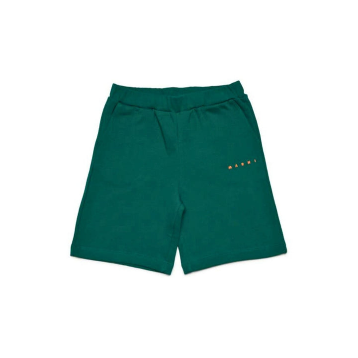 Fleece shorts with elasticated waist. Made of 100% cotton. Featuring a contrasting color institutional logo. American-style pockets on the front.