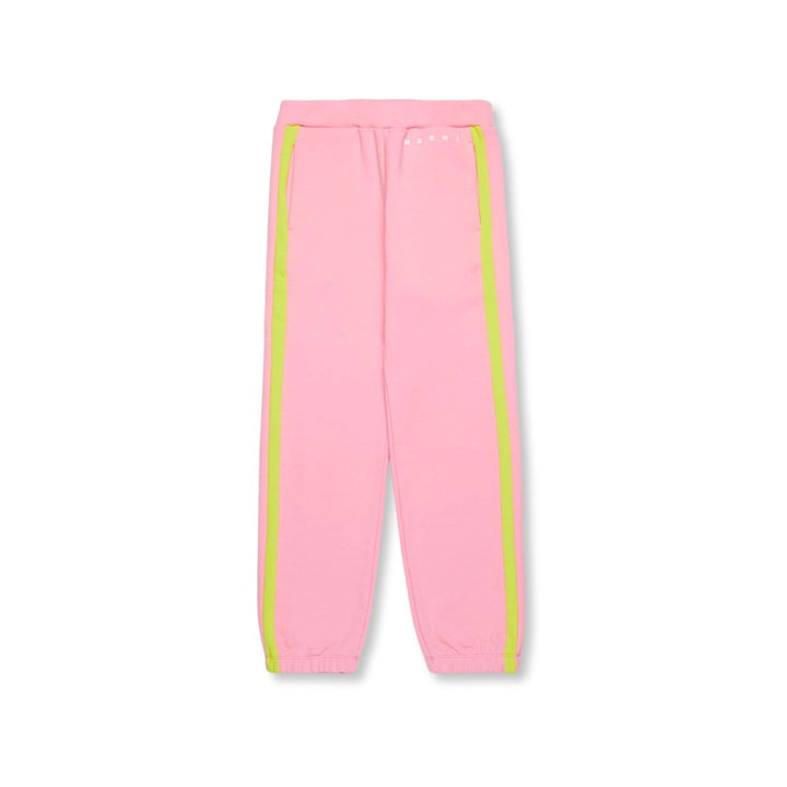 Fleece jogger pants with elasticated waist and ankle cuffs. Featuring an institutional logo on the front and contrasting color bands along the legs. An easy-to-wear casual option.