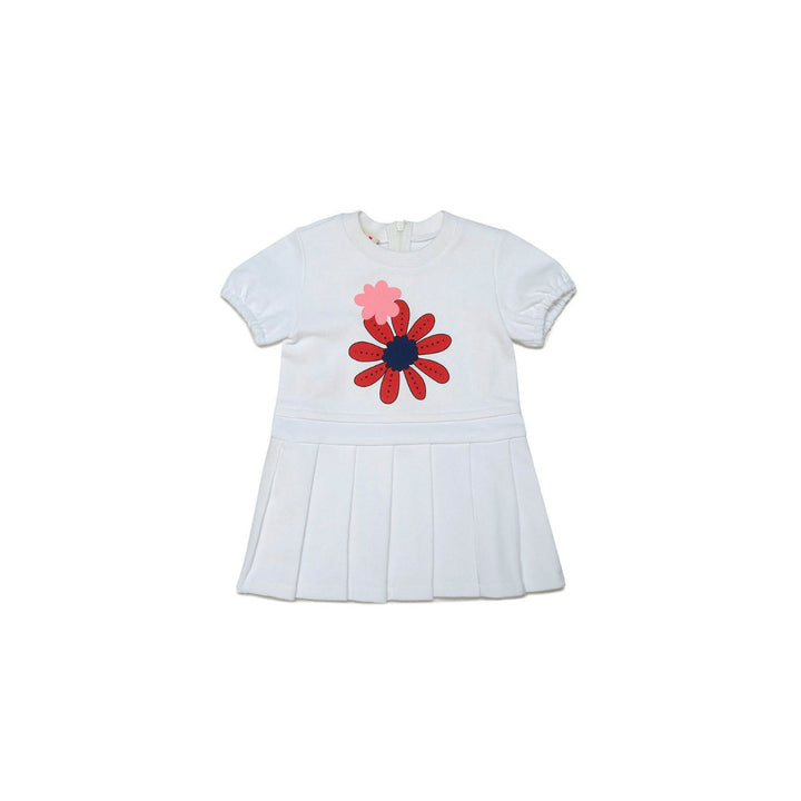 White Cotton Dress With Pleated Skirt