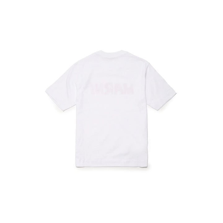 Crew-neck, short-sleeved t-shirt in cotton jersey with contrasting Marni brush logo, which characterises the article with a casual touch full of energy.