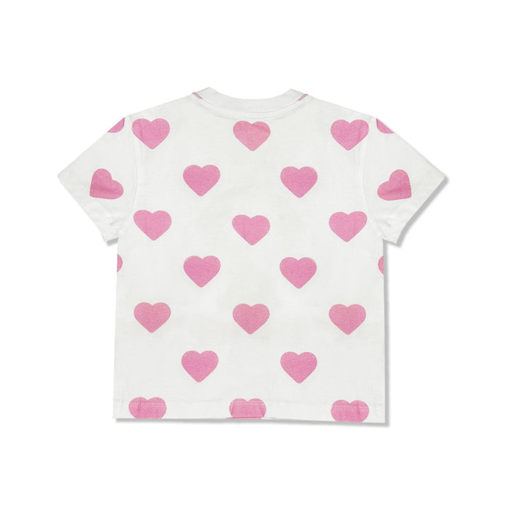 Girls White Heart-Print Cotton T-Shirt