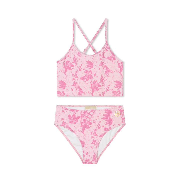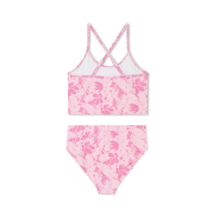 Girls Pink Floral-Motif Logo-Print Bikini Set