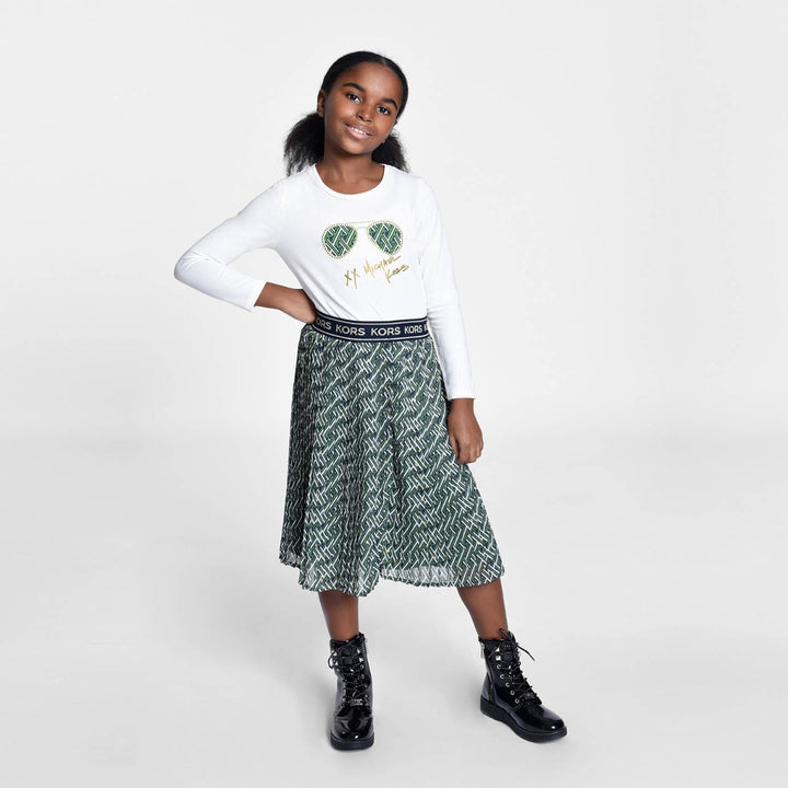 Girls White Logo Print Full Sleeves T-Shirt