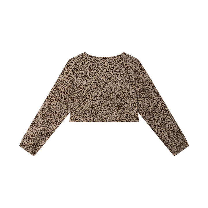 Leopard print crop top by MK with a golden button in front and a full sleeve. It gives a sleeke and chic look to your girls.