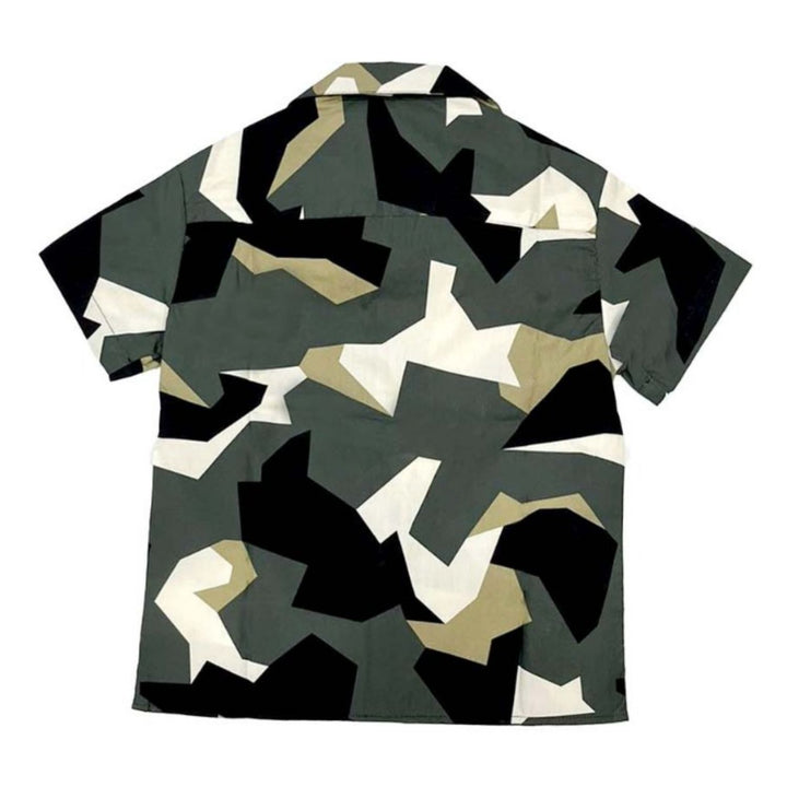 Neil Barrett Kids Shirt Made Of Military Green Fabric With An All-Over Thunderbolt Motif Printed In A Contrasting Colour And A Small Black Neil Barrett Logo On The Front. It Has A Half Sleeve Attached To It.