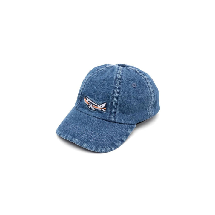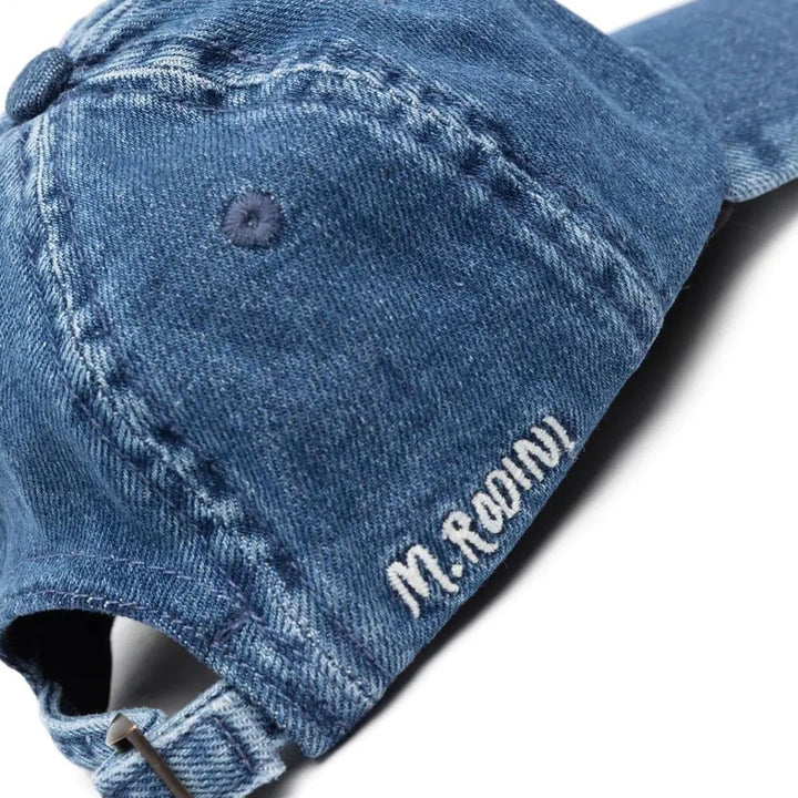 patch-detail denim baseball cap from MINI RODINI featuring denim, stretch-cotton, logo patch to the front, curved narrow brim and adjustable strap to the rear.