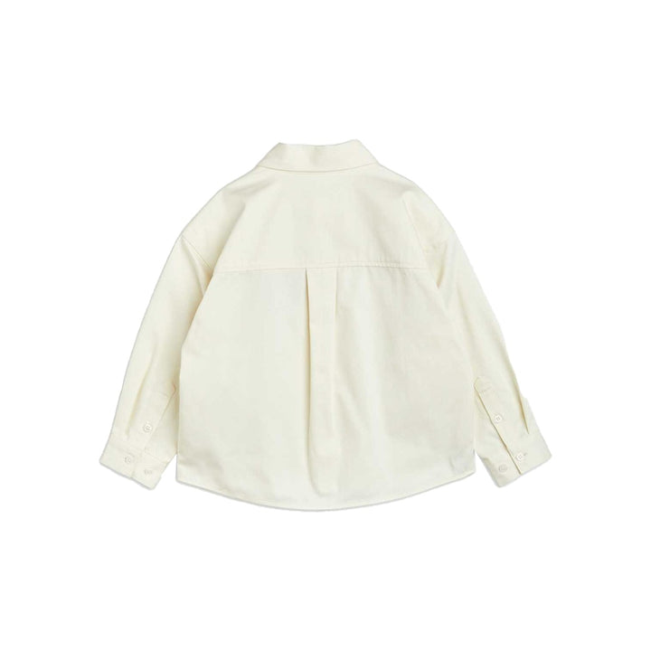 White woven shirt with a Chef Panda print decorating the chest, made from 100 % GOTS certified organic cotton. The shirt has slightly dropped shoulders for a relaxed fit, buttons closing the front and a classic collar.