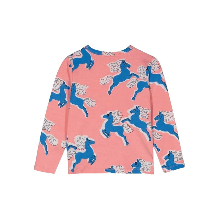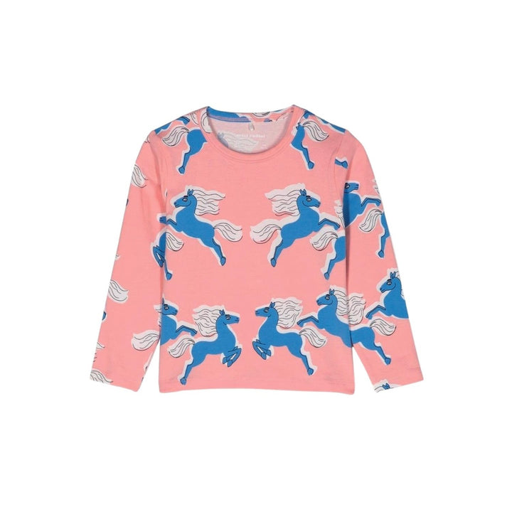 Mini Rodini takes classic silhouettes and updates them with refreshing details. A fine example, this long-sleeve T-shirt is animated with a playful horse print.