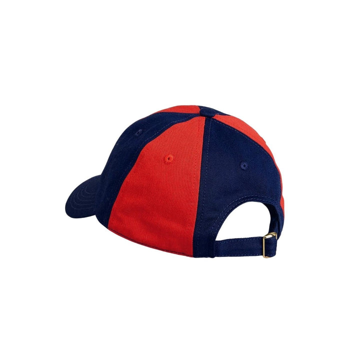 Navy and red cap decorated with an embroidered Mini Rodini Panda patch, made from 100 % organic cotton. The cap is adjustable with a metal buckle in the back for the perfect fit.
