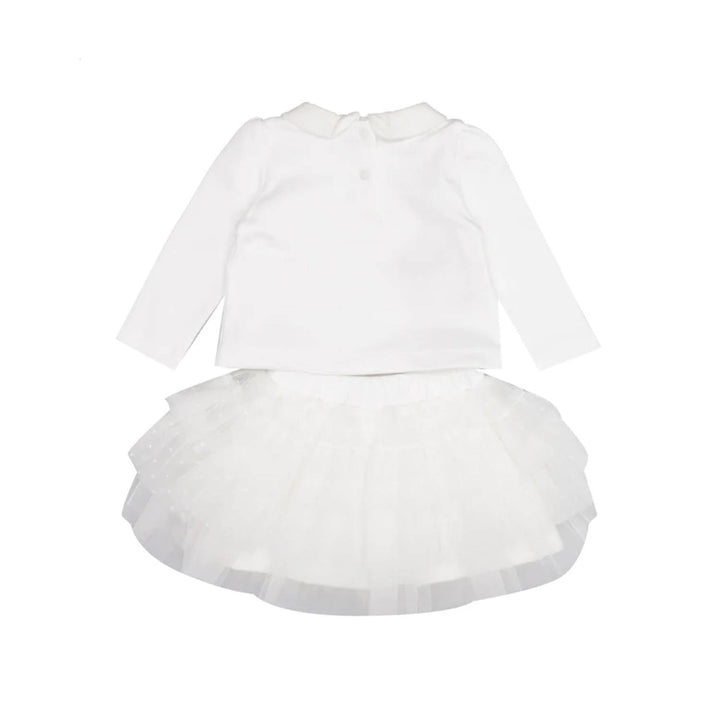 Baby Girls White Rhinestone-Embellished Tulle Skirt Set