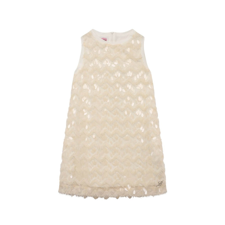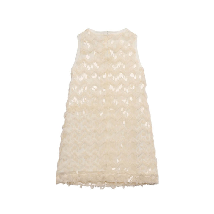 Girls Cream Detailing Sleeveless Dress