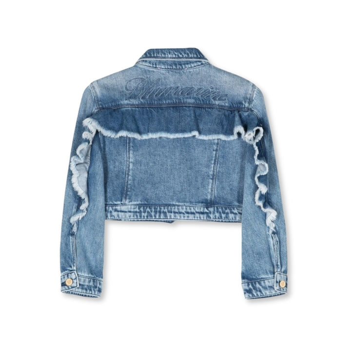 Girls Denim Blue Logo-Embroidered Jacket