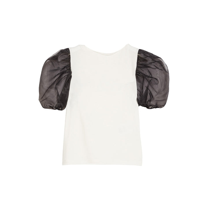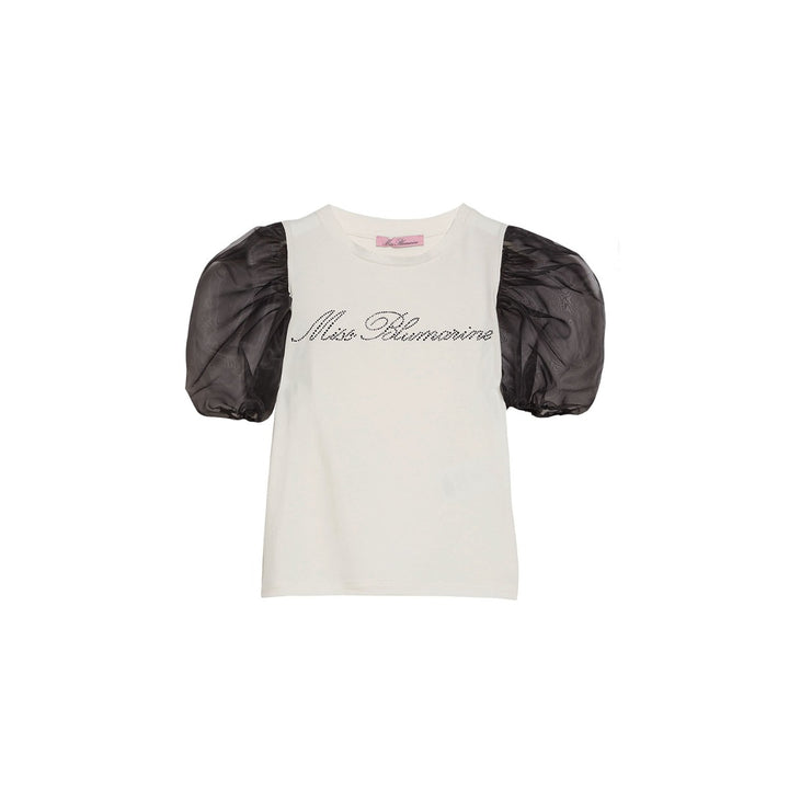 Girls floral-detail cotton T-shirt from MISS BLUMARINE featuring white-black, stretch-cotton, floral detail, straight hem, round neck and short sleeves.