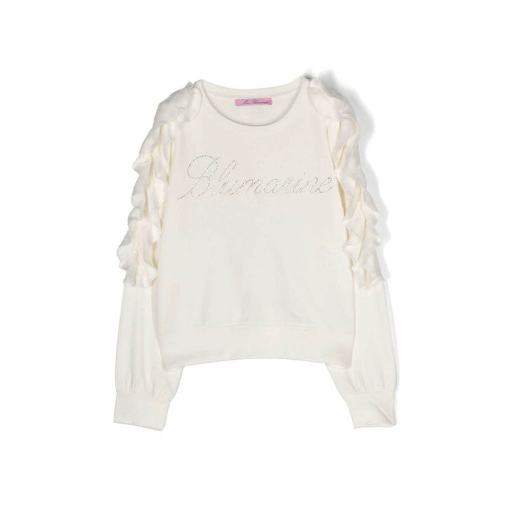 Girls White Rhinestone-Embellished Logo-Print Sweatshirt