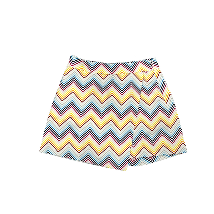 MISSONI KIDS TRACK SKIRT in white/multicolour and cotton diagonal stripe pattern, logo waistband, elasticated waistband and two diagonal pockets to the sides.