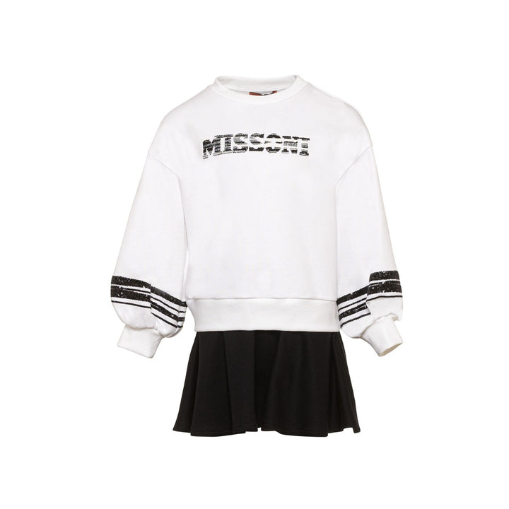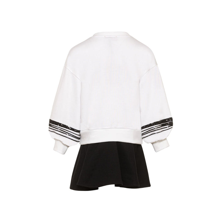 Girls White & Black Cotton Sweatshirt Dress