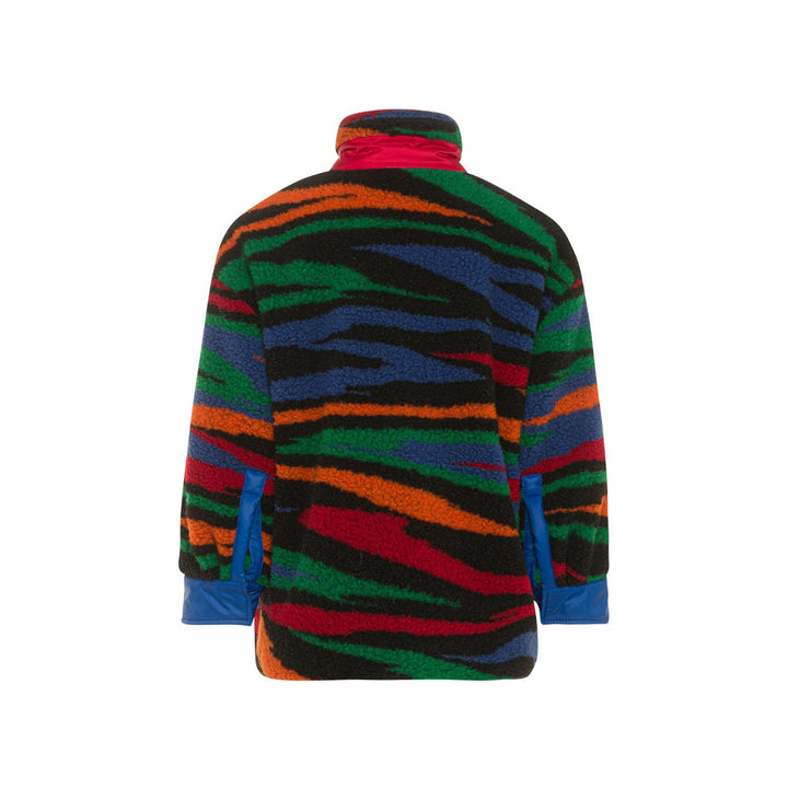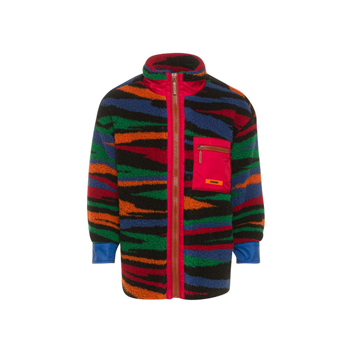 The full-zip closure with internal storm flap ensures extra protection against the elements, while the blue nylon snap button cuffs offer an adjustable fit. The iconic Missoni multicolor pattern, present throughout the garment in black, green, red, orange and blue, gives a distinctive and lively touch to this winter coat.