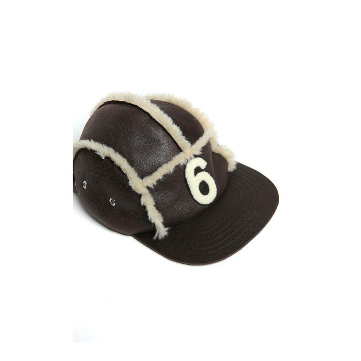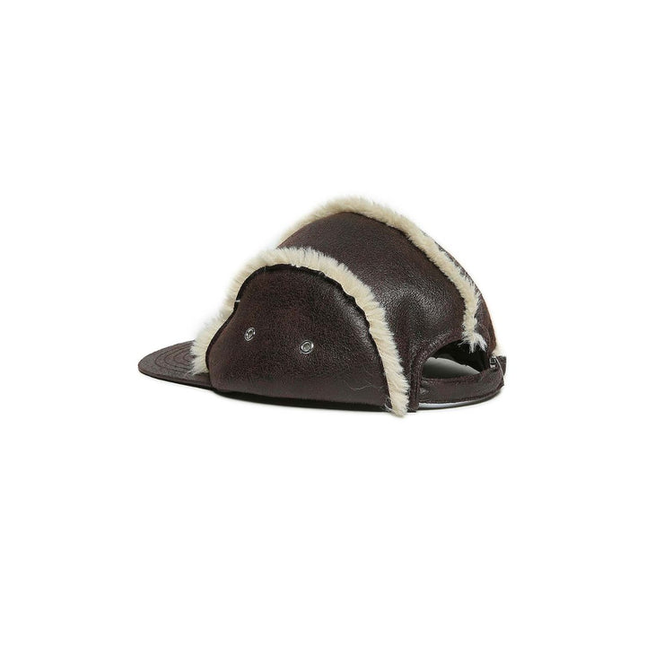 Brown faux shearling baseball cap with a front flap, 6 logo detail on the front and adjustable drawstring on the back.\