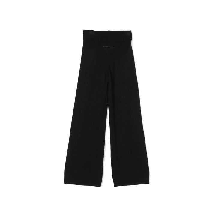 logo-print wide-leg trousers from MM6 Maison Margiela Kids featuring black, logo print to the front, drawstring fastening and wide leg.