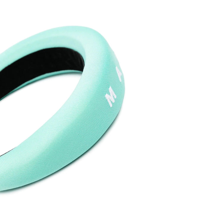 logo-embroidered head band from MM6 Maison Margiela Kids featuring mint green, twill weave, padded design, embroidered logo and slip-on style.