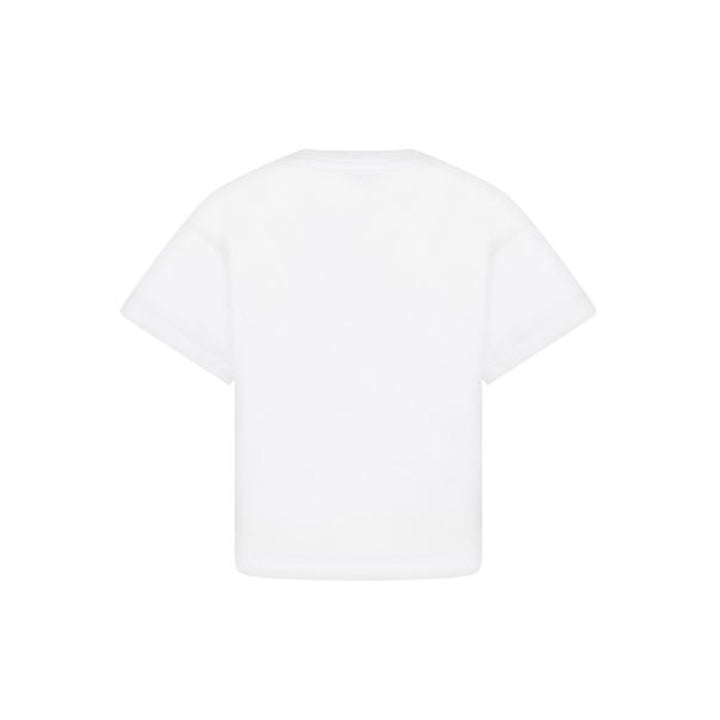 monochrome graphic print cotton T-shirt from MM6 Maison Margiela Kids featuring white-black , cotton , monochrome graphic logo print to the front , crew neck , short sleeves and straight hem.