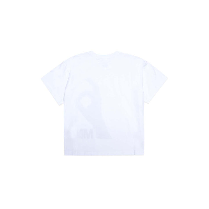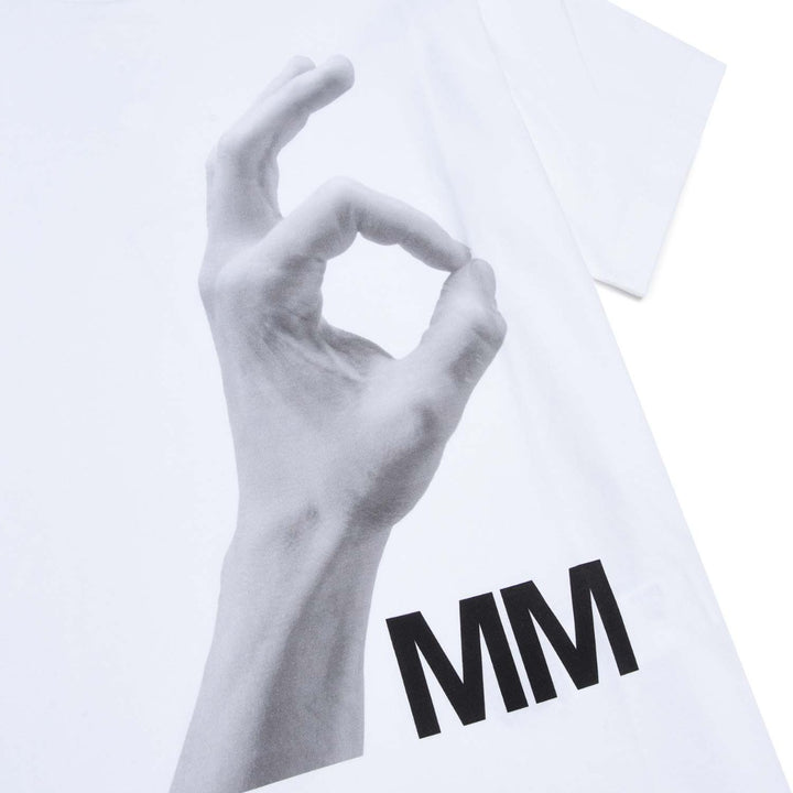 Short-sleeve, crew-neck white cotton jersey T-shirt with front six hand print.\