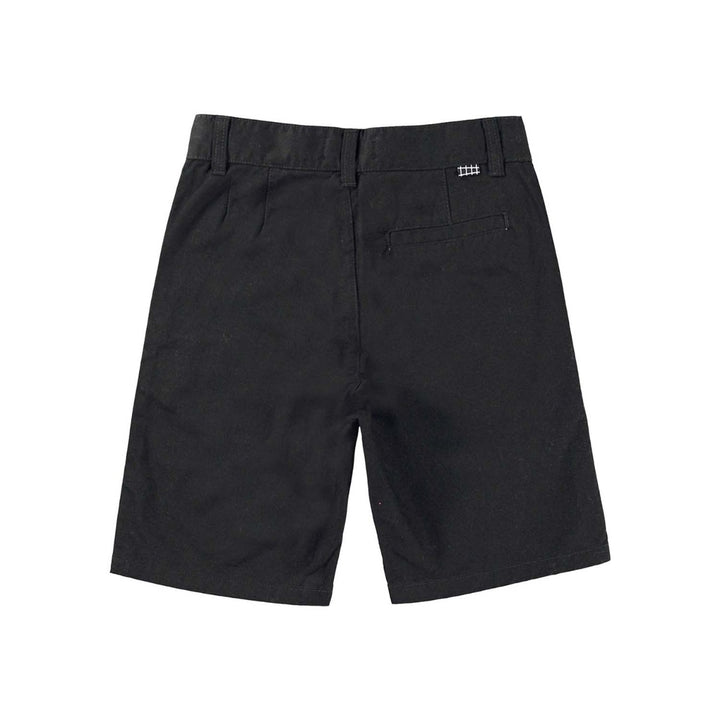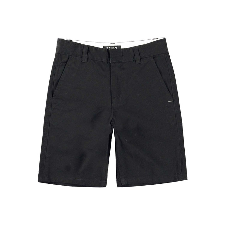 Boys Alan is a pair of classic, black chino shorts in 100% cotton. They have belt loops, side pockets, a single back pocket, and they are in a regular fit. The waistband has an inner, adjustable elastic, which makes them a perfect fit for all kids. Sizes 92-134 have a snap closure for easy dressing, while sizes 140-176 have a regular jeans button.