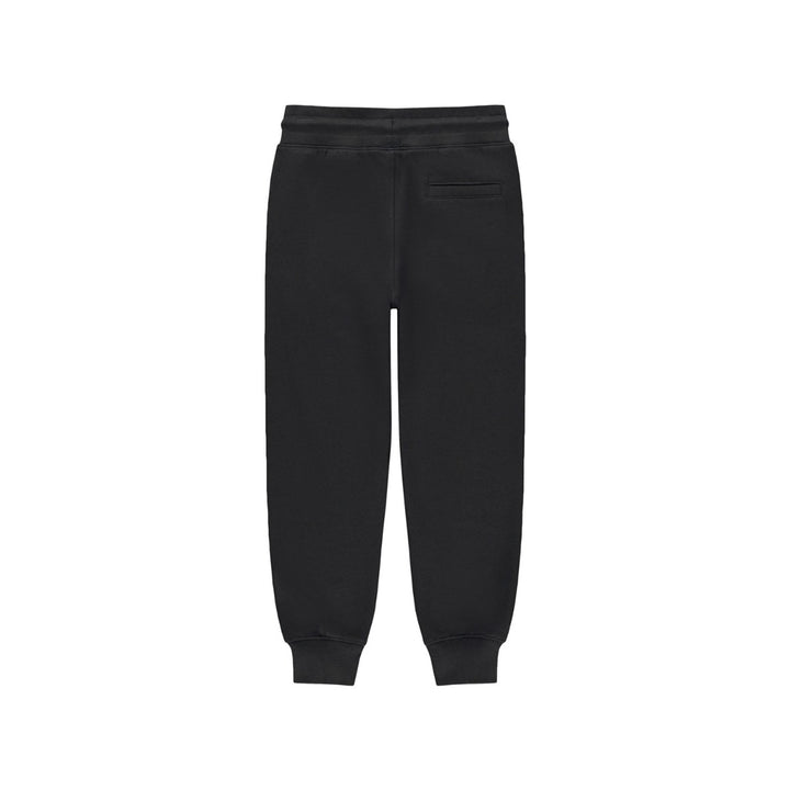 Black jogger sweatpants with a small, white smiley face embroidery on the front. These joggers are in 100% cotton. They have elastic and ties at the waist, rib at the legs, hidden zip pockets at the sides and a back pocket. These joggers are in a regular fit.