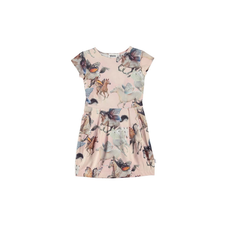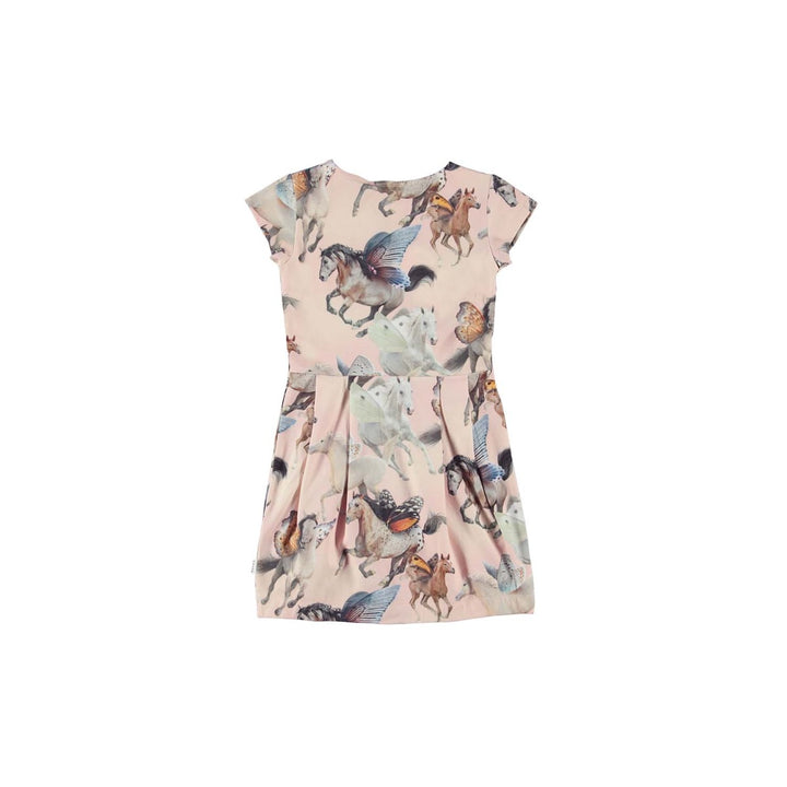 Cia is a short sleeve dress in a feminine shape. The dress is in yellow with a horse print. This Molo product is GOTS certified organic, which means that it is made with certified organic materials and produced under the strictest social and environmental standards throughout the entire manufacturing process. In addition, the GOTS certification secures that the product is free of hazardous chemicals. This Molo