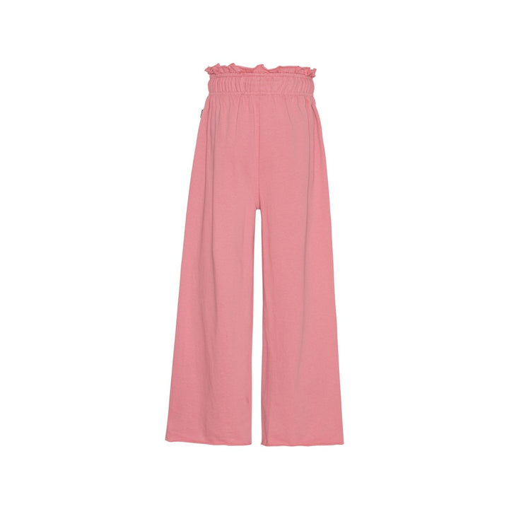 Comfortable, pink joggers in organic cotton. They are in a relaxed fit with extra wide legs and an elastic waist with ties. Wear the joggers with a matching sweatshirt for a complete look. This Molo product is GOTS certified, which means it is made with certified organic materials and produced under the strictest social and environmental standards throughout the entire manufacturing process.