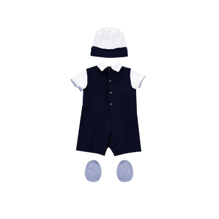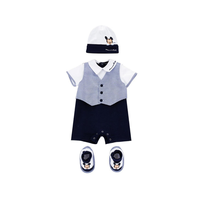Fun set consisting of a playsuit with waistcoat, hat and slippers.