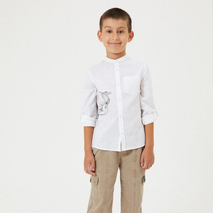 Boys White Spike Linen Shirt