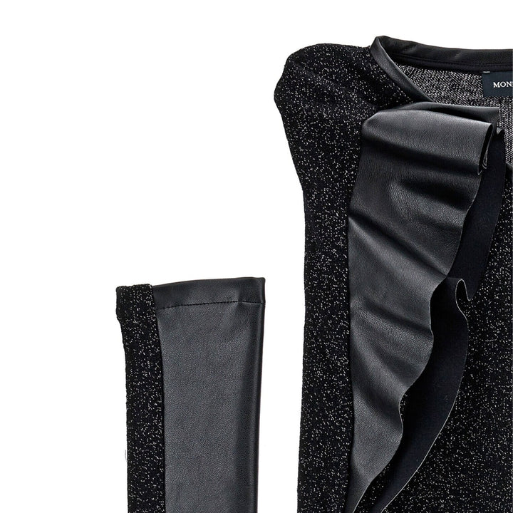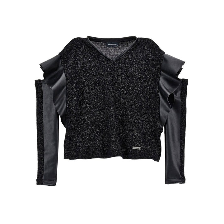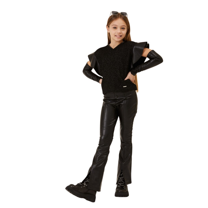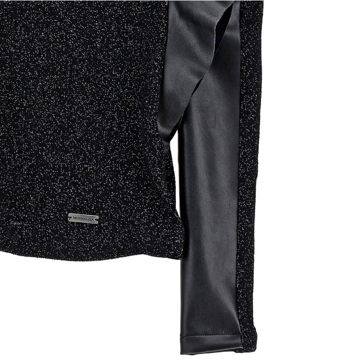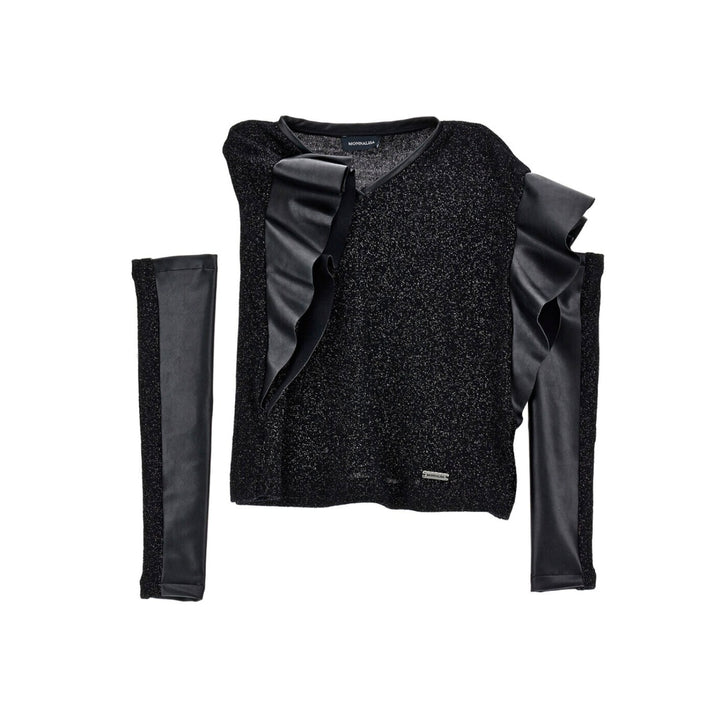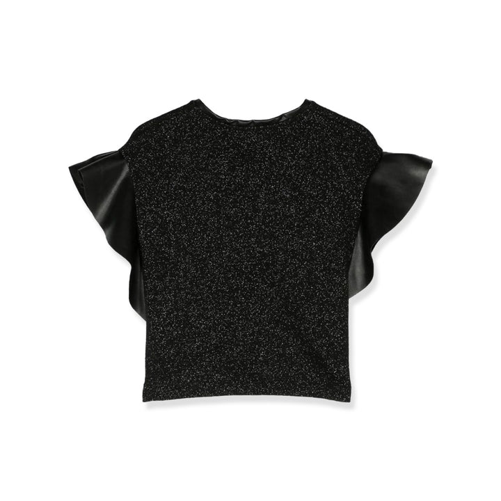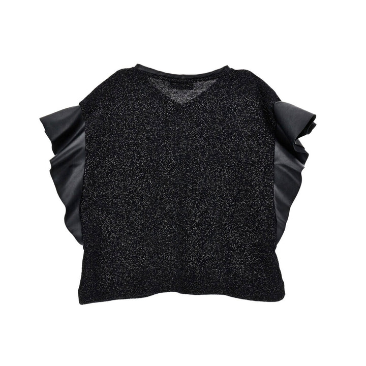 Girls Black Metallic-Threading Panelled Top with Sleeves