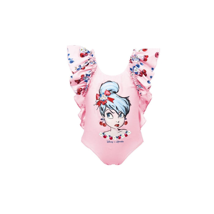 Girls Pink Tinkerbell Stretch Swimsuit With Ruffles