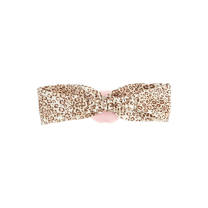 Pink headband baby girl Monnalisa Kids. Leopard print and distinctive Teddy Bear motif. Polyester 100%, Viscose 91%, Spandex / Elastane 9%