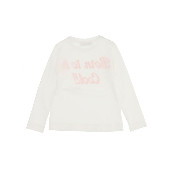 This white cotton T-shirt for girls is by Italian designer Monnalisa. It has a Orange Born to be Cool printed on the front, and the brand's logo. It is made in comfortable jersey and has Full sleeves.