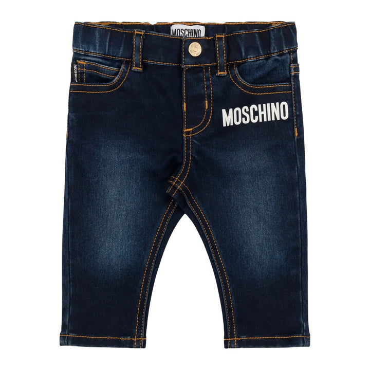 Baby Kids Blue Denim Logo Print Jeans