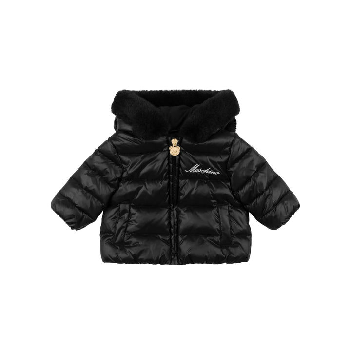 Girls Black Teddy Hood Nylon Down Jacket