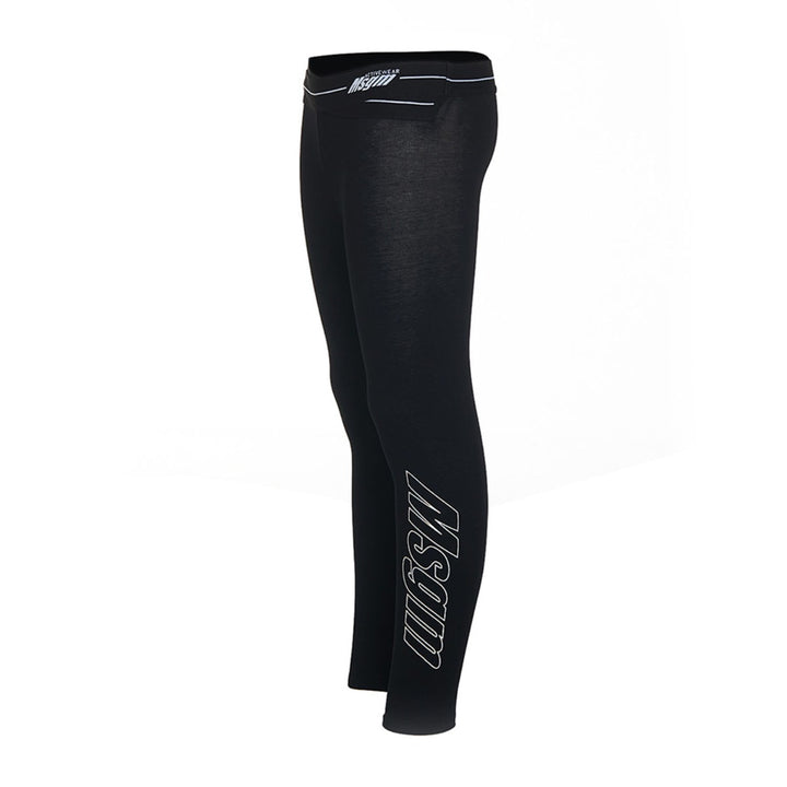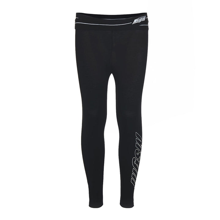 Teen girls go-to black leggings by MSGM. The brand's white 'NEVER LOOK BACK' logo print turns a classic silhouette into a contemporary statement. Made in stretchy cotton jersey, they have an elasticated logo waistband.