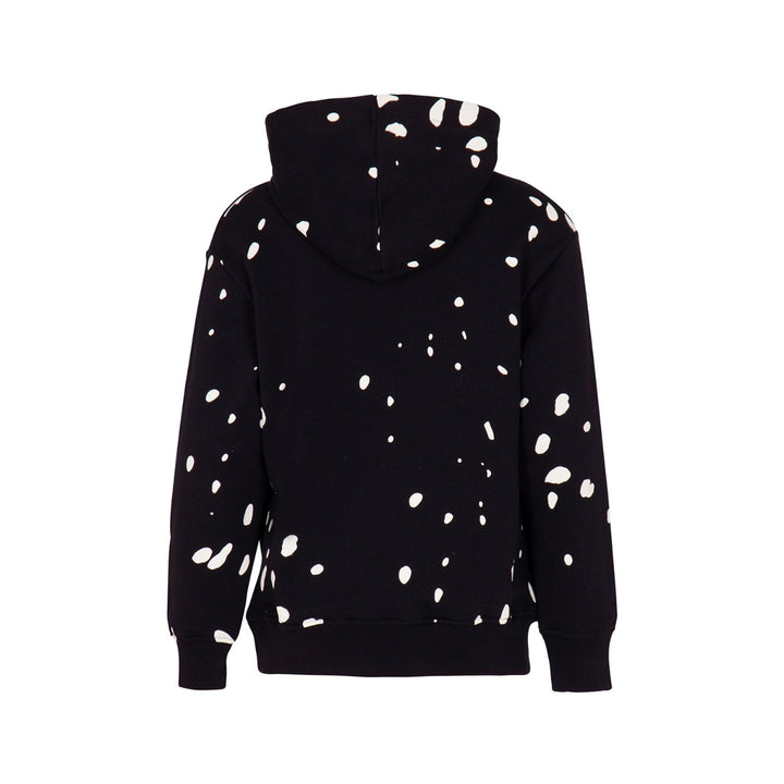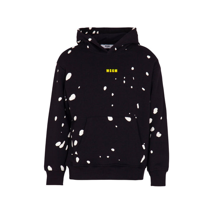 An Italian-made hoodie for boys from MSGM, in black. Super comfortable in cotton sweatshirt jersey, with a fleecy-feel underside, it is designed with ivory spots and a flocked micro logo in contrasting yellow. This layering piece has a pouch pocket on the front, great for warming little hands.
