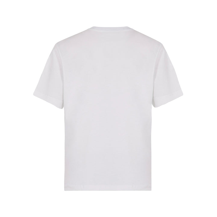 A white short-sleeved T-shirt for boys from Italian label MSGM, made in soft cotton jersey. It has a colourful watercolour-inspired logo graphic on the front. This casual crew neck tee has a casual and comfortable relaxed fit.