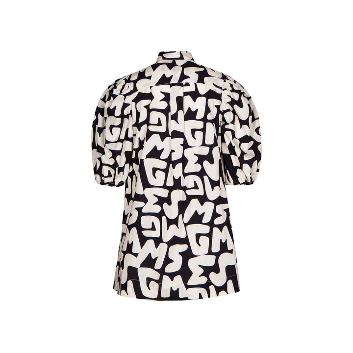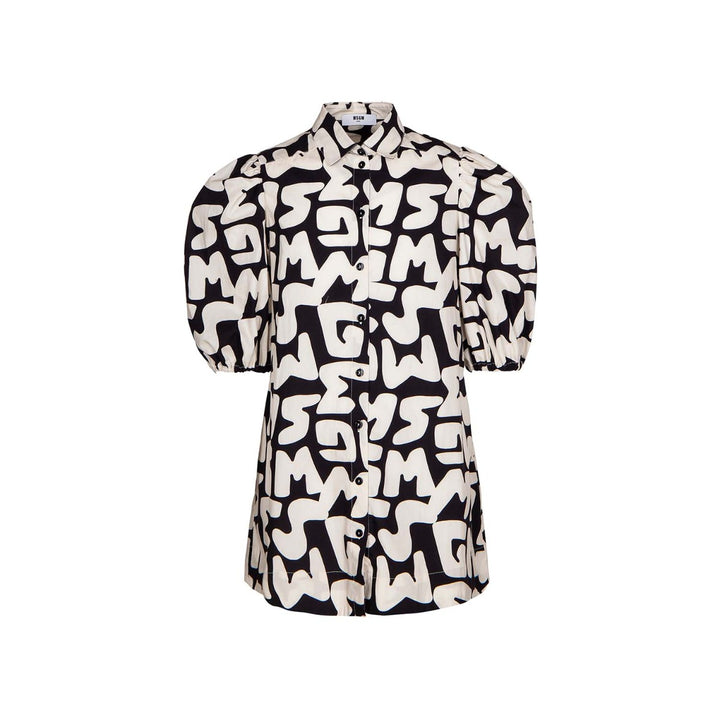 Dress made of silky twill with a beige, black doodle background, with black logo lettering and branded front buttons. Fully lined with comfortable viscose, it has a stylish collar, an straight line waist and elasticated cuffs.