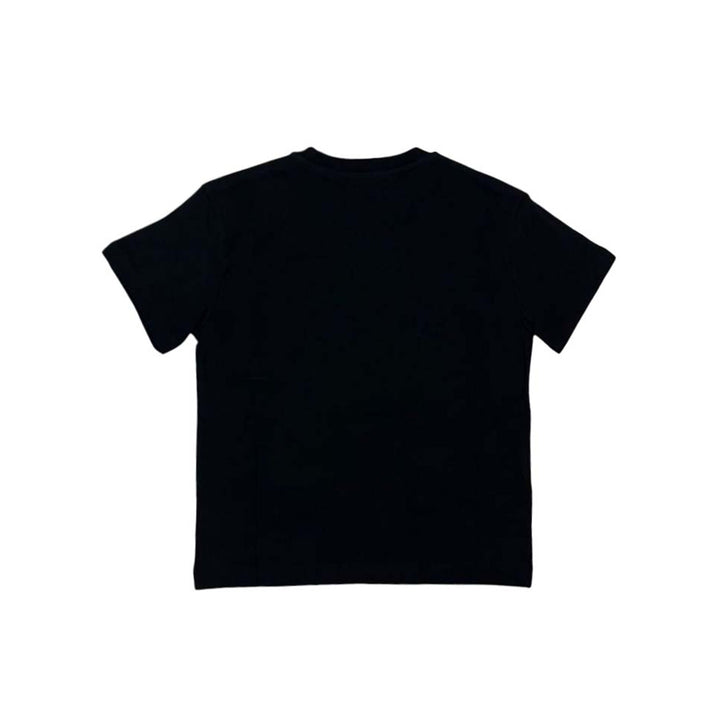 Black t-shirt for girls Italian brand MSGM. Made from soft cotton jersey. It has a colorful butterfly and the brands logo print in neon green and black on the front.